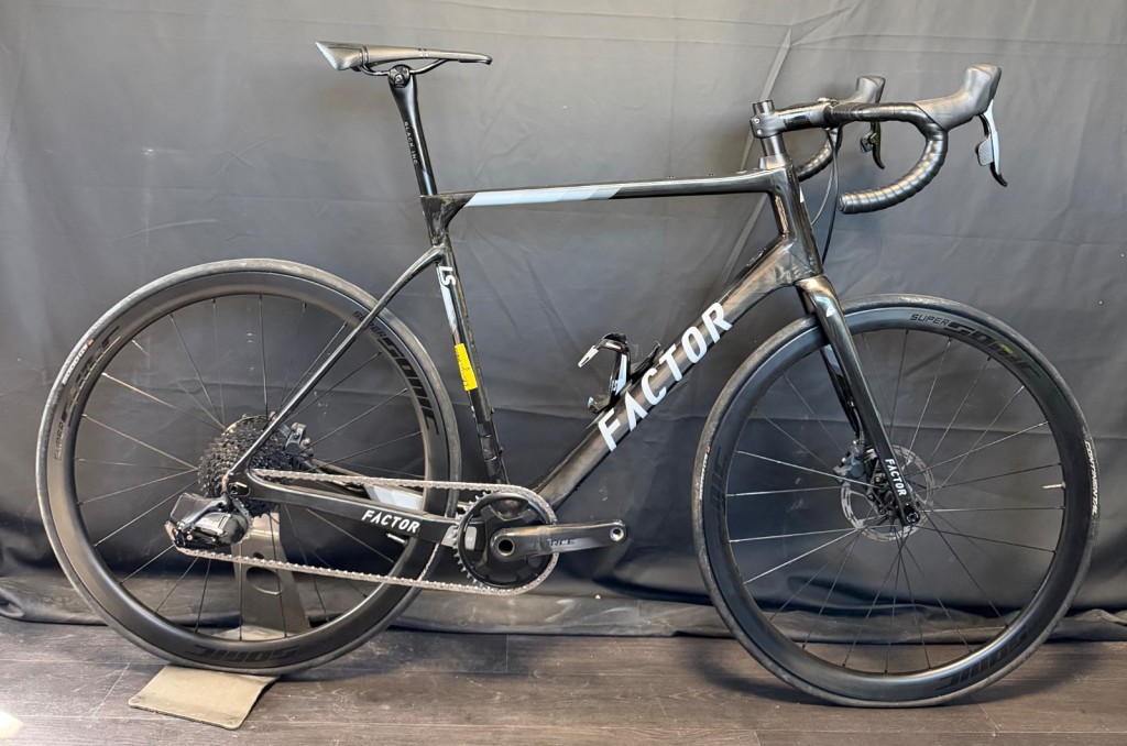 Factor LS T.58 équipé en SRAM Force AXS 1x12v avec une paire de roues carbone Sonic.