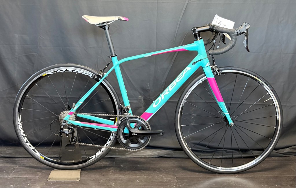 Orbea Avant T.M équipé en Shimano 105 mécanique 2x11v avec une paire de roues aluminium.
