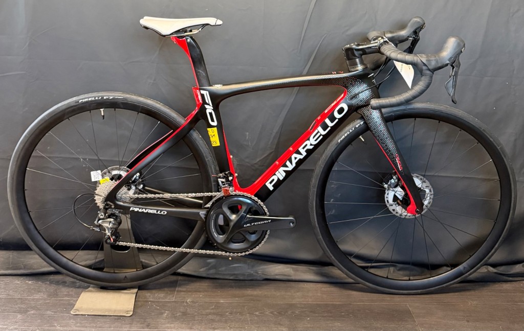 Pinarello F10 T.46.5 équipé en Shimano Ultegra mécanique 11v avec une paire de roues aluminium.